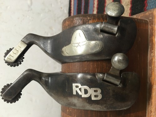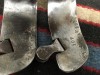 Blanchard style spur marked A1 MICKELSON 107. Do not know the history but this pair sure has the look. He curled the bottom of the back of the heel bands in to ride in the boots spur ledge. Blanchard style swingers. 1 1/2" heel bands, 3 1/2" heel openings, 1" rowels, 2 3/4" shanks. The initials can be easily removed. We pay shipping within the 48 states. We accept most credit cards, Pay Pal, money order, or check.