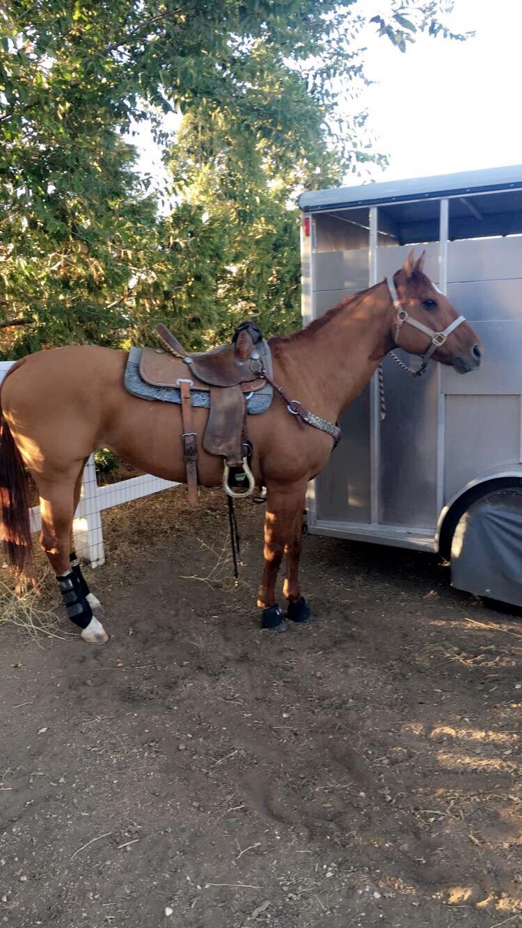 Got this mare in on a trade. She has a BIG motor, BROKE, super nice stop, light in the face. She sat in pasture for a year before we got her. We had her going really well, started her back nice and slow and did not push her . Had her going solid for about two months then she came up sore . SHE IS GETTING BETTER WITH REST. She has been on stall rest for a few weeks. I have not taken her to the vet as my truck just blew an injector. So my hard luck could be your good luck. This mare has had a rope thrown off of her, drug barrels, swims in neck deep water , dirt bikes have flown by her, went to a football game, carries flags. If you can get her sound she will be a 1d/2d barrel horse. This is not this mares fault so I’m not going to give her to someone who will just hurt her worse or try selling her off to auction . This is also not a beginners horse as she is FAST FAST FAST. Could be a step up horse especially for a high school or college rodeo person. She is UTD, fresh shoes. She is one to take a chance on and won’t disappoint. I’m an honest seller wanting the best for her. More pictures upon request.