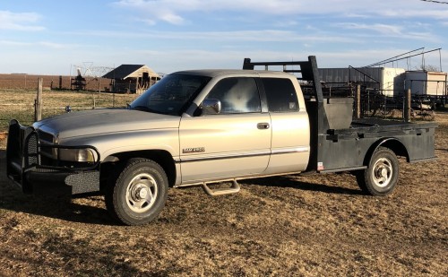 5.9 Cummins 12 valve, 5 speed manual Transmission. 243,750 miles. Transmission is newly rebuilt and valves adjusted. Clutch, pressure plate, and flywheel replaced about 6 months ago. New batteries. 2 year old custom flatbed by Pickup Pals in Lubbock, Texas. Paint is rough and there is a dent on passenger side at back of cab (see picture). Runs and drives good.