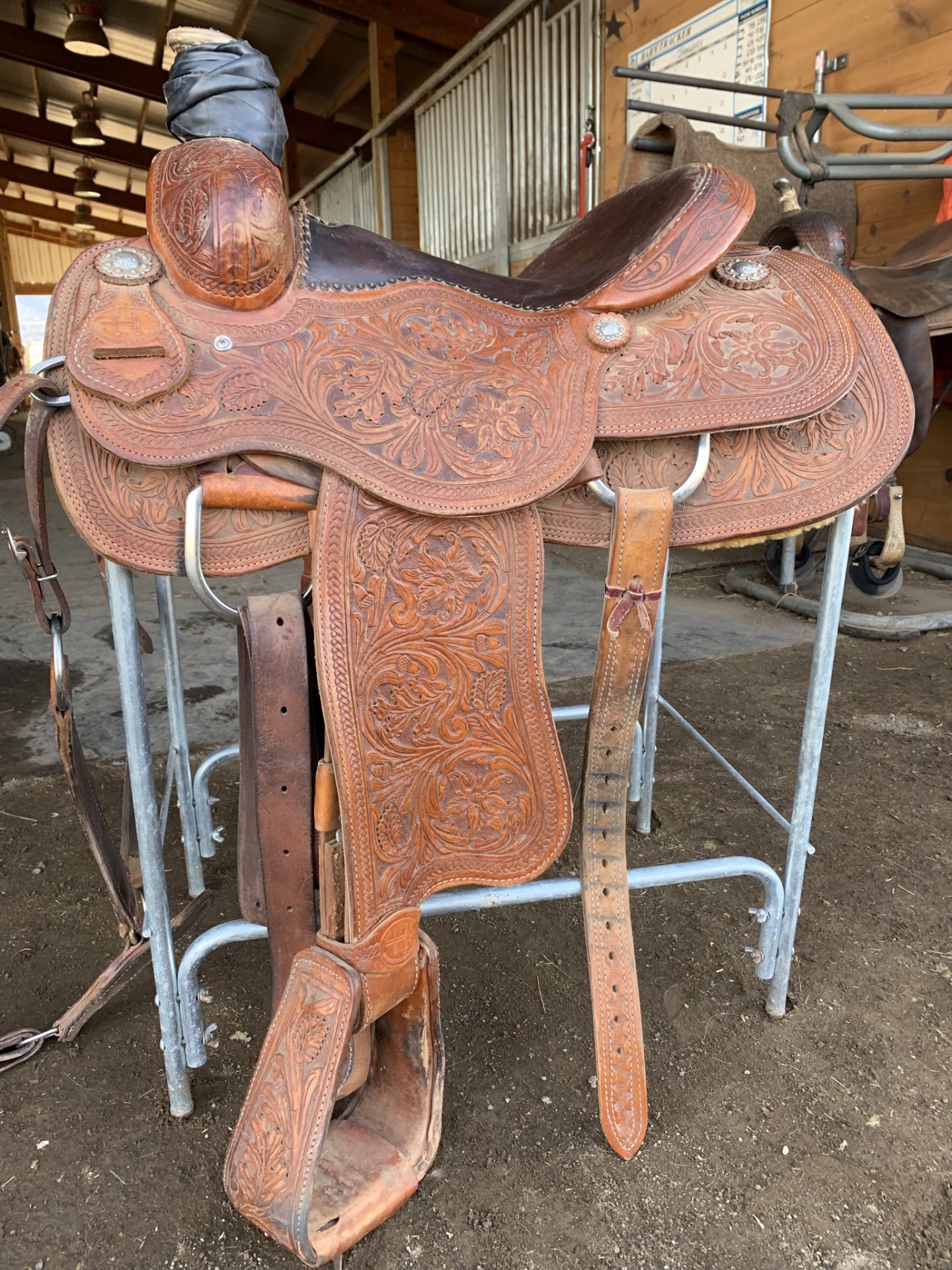 Great roping saddle, comes with breast collar and rear cinch. 14 and 1/2 in seat very comfortable. Custom ordered this saddle in 2015 and paid 3,500. Only selling because need different seat size now. Shipping available make offer