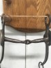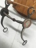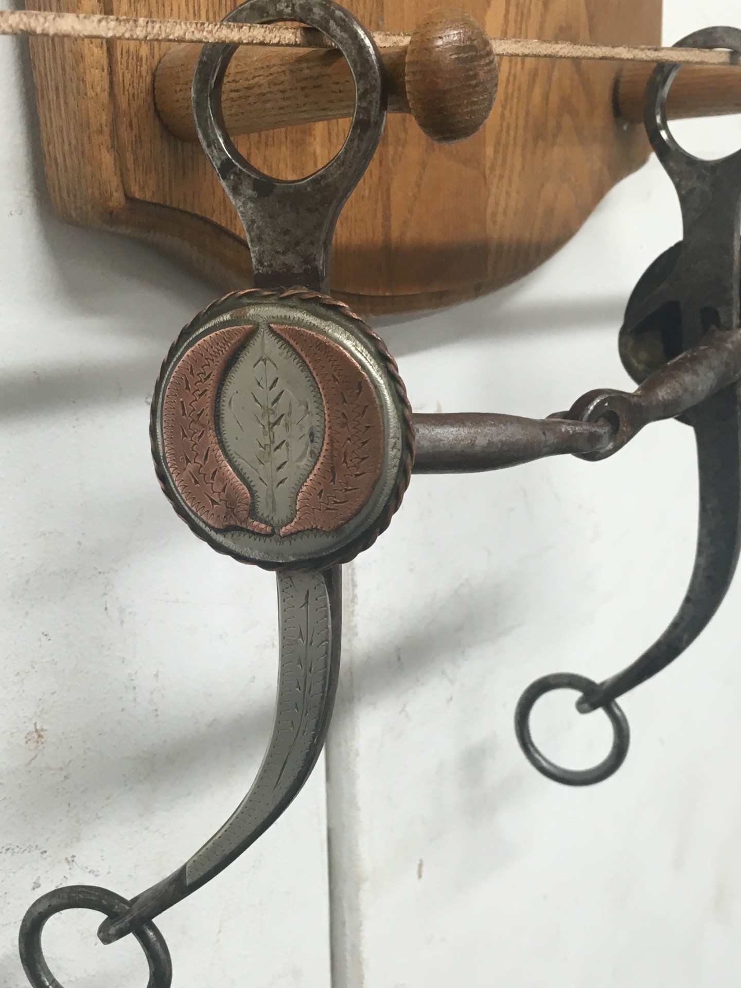 ROGERS 47 marked bit made by long time maker Don Rogers of Hereford, Tx. This bit show little use. I believe it to be one of his earlier made bit. It features the 1 7/8 conchos with the copper chili peppers and copper rope edge, 5 1/8 mouth, 6 7/8" cheeks. This is a very usable bit by a good maker. We pay shipping within the 48 states. We accept most credit cards, Pay Pal, money order, or check.