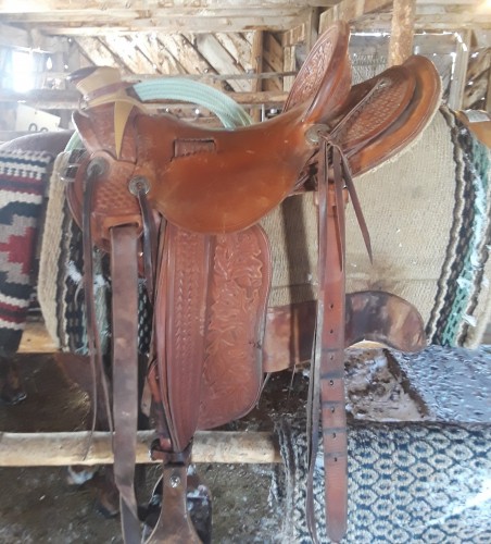 Slightly used Steve Harris built on a 3b tree. Fits horses right. Noting wrong with the saddle, it’s just too big for me. Stirrups and silver doesn’t go unless purchaser is willing to buy them for extra. Call or text with questions or for more pictures.