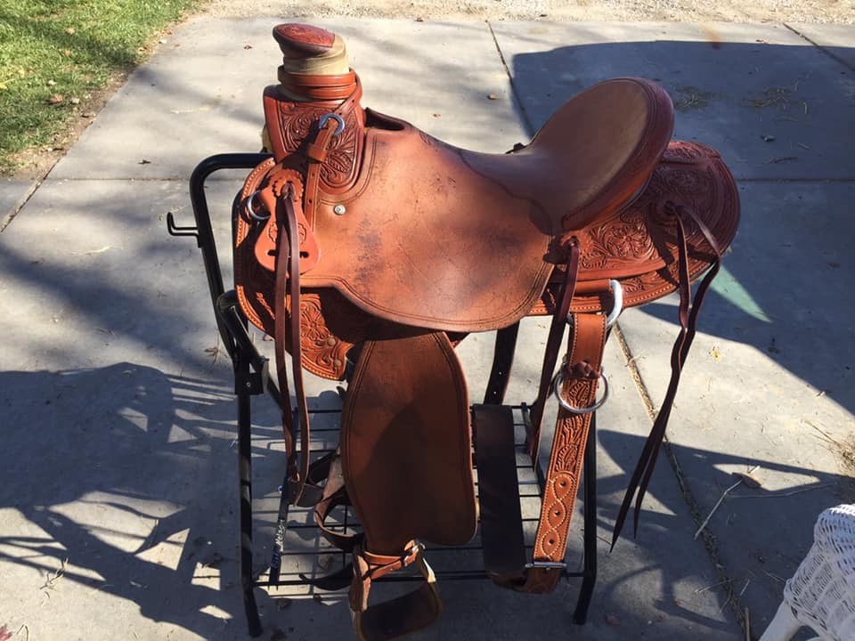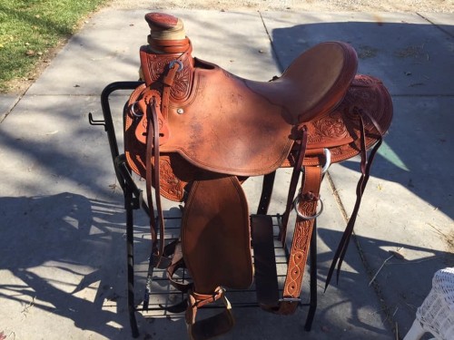 Lightly used, Beautifully tooled, high quality McCalls Wade Trail Saddle
