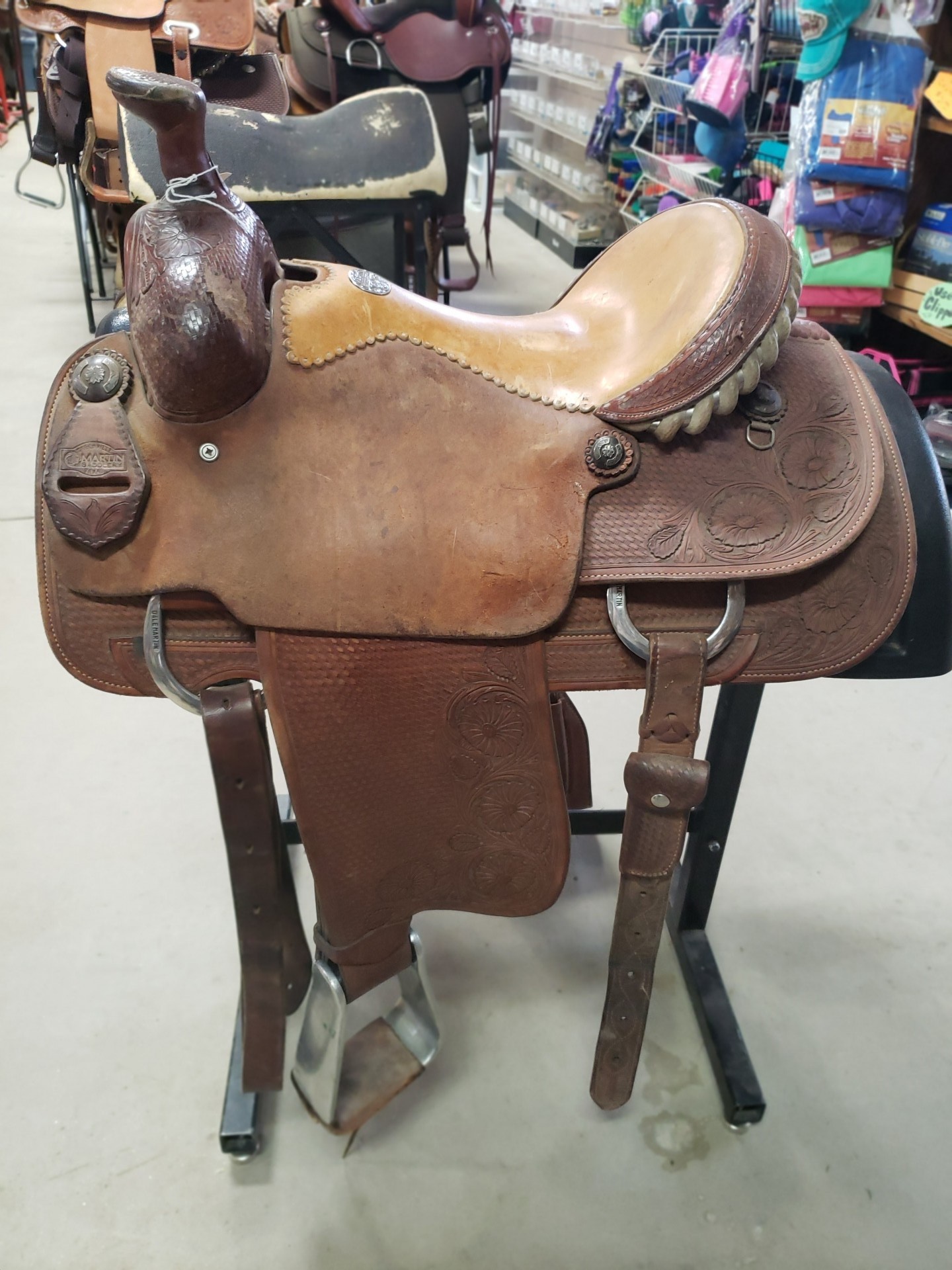 This saddle is super nice and heavy duty! This is an original Dale Martin. Comes with a back cinch.
