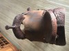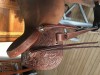 Rare find 15.5 inch Jeff Smith cutting saddle. Lightweight under 30 pounds with a single short skirt measuring 25.5 inches. Beautiful floral too old and rough out seat and fenders. Nettle stirrups and back cinch included . The saddle is so comfortable with the nice deep pocket. Full quarter horse bars 6.75 Gullet - mint condition - $2300 shipped. Located in Wisconsin -shipped with ups ground . Please text me for more pics or measurements - thanks for looking !