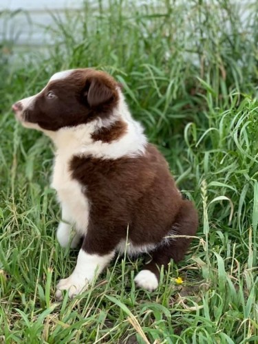 Border Collie pups born 2/15/19, 1female red & white, Come from working parents,the mother is black & white short hair and the Dad is red & white long hair. She is the last one of a litter of 4. Real sweet pup really likes people real quiet doesn’t cry or bark much. Had her with me the other day and some cows came up she didn’t shy away,she walked up and watched.