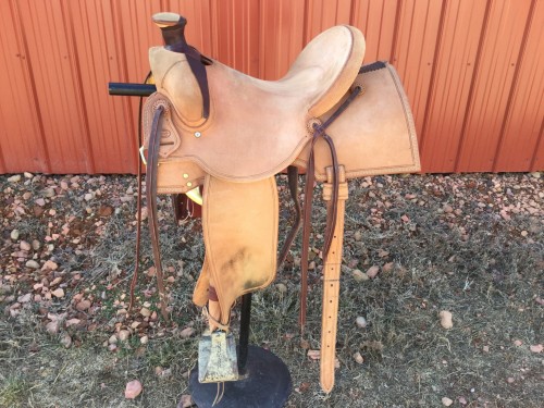 Like new 15 in saddle only been rode a few times. Square in-skirt rigged saddle. Cantle is 4 1/2 by 12 semi shovel. Mike keetch dally horn with a Lattigo wrap. This saddle sits down nice on a horse and has free swinging stirrup leathers. Saddle come with new 4 in stainless steel stirrups. Call and leave a message land line only.