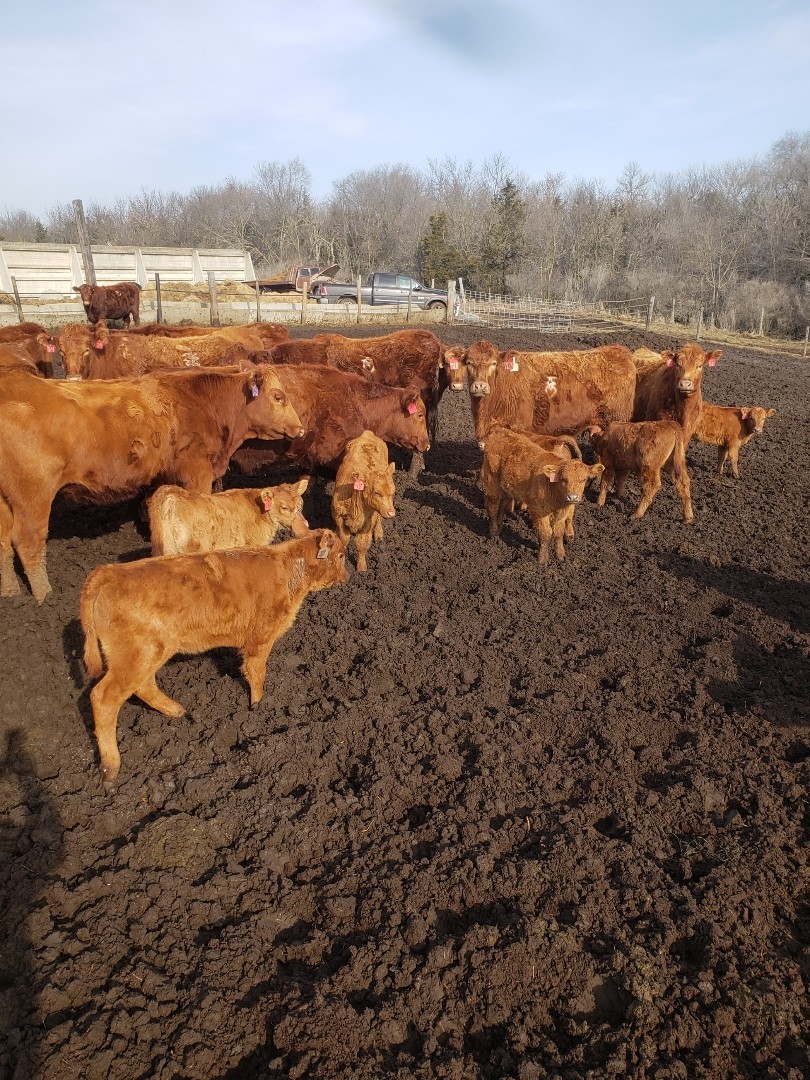 Cow Calf Pairs for Sale: 100 - Red Angus Heifer Pairs - South Dakota SOLD #104191