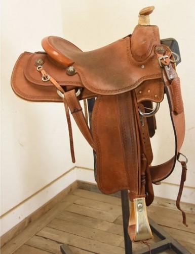 Saddles for Sale: Used 14.5" CW Roberts Maker Calf Roping/Tripping Saddle Code: C145CWROBERTSRO SOLD #104862