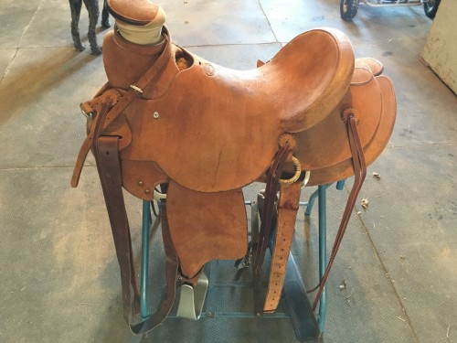 Lightly used Tom Dorrance style Wade roughout saddle, extremely comfortable, and fits my quarter horses perfectly. Sadly must sell due to weight after shoulder injury. Freckers appraised value as much as $4400.
