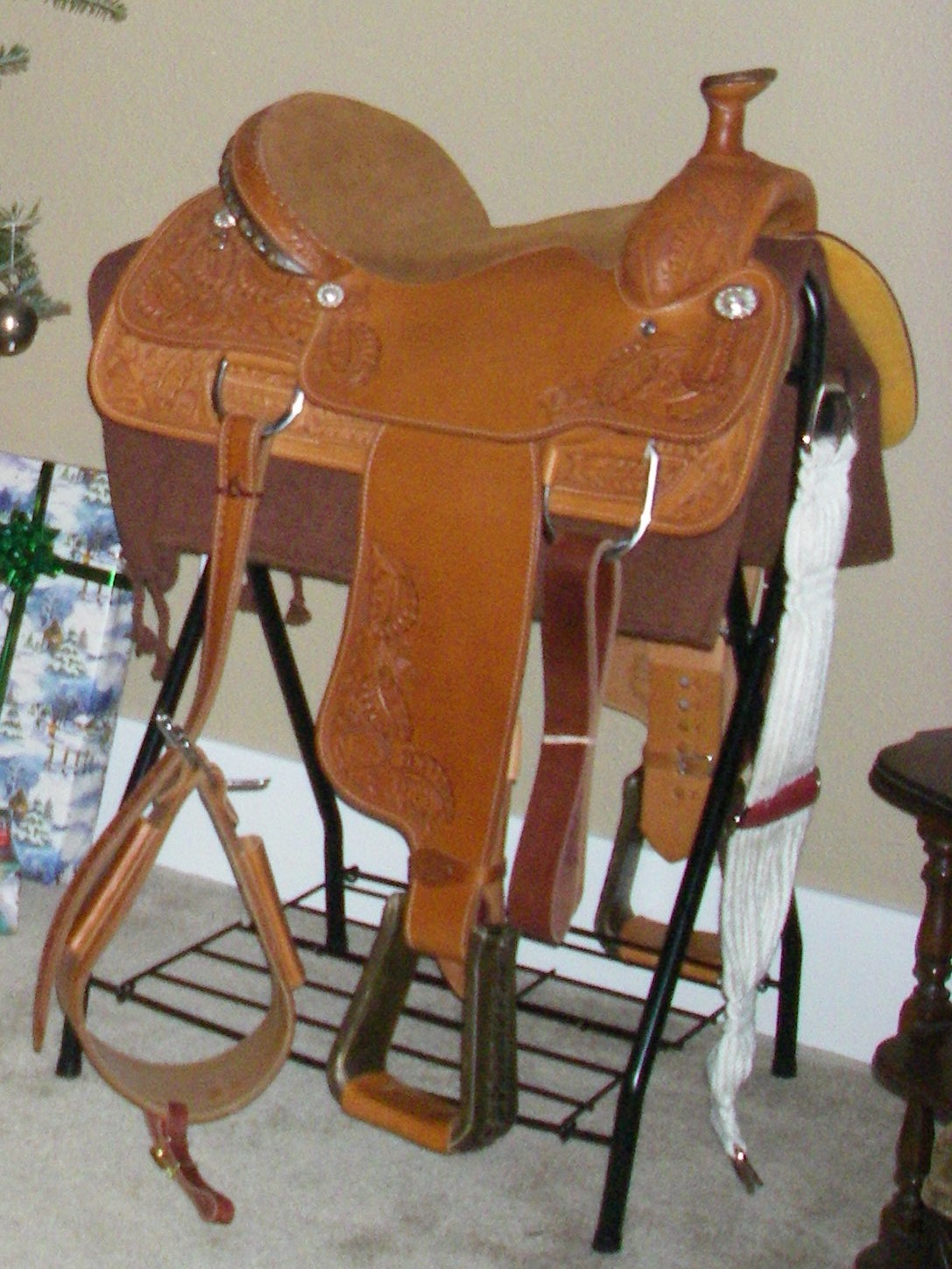 Like new, ridden only twice (due to injury). Includes blanket and new lead rope. Beautiful saddle... wish I could still ride, but it needs a good home - on a good horse - under a good rider!
