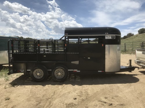 Near new shape 16ftx 5ft.. Hughes. Has only been pulled about 400 miles at most. Has pock marks on frame from being on a gravel road, other wise like new. Has never been used for horses or livestock, just 4 wheeler and a couple loads of lumber, so great shape, and very clean. Rubber board floors, 14 ply tires.No e-mails please, calls only. Not interested in trades. Thank You
