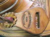 The seat measures 14" to the cantle binding, fenders adjust 26"-32" center of seat to bottom of stirrups. This is a quality shop built saddle, real wool lining, mule hide wrapped dally horn, padded suede seat, brass rigging, original back cinch. $1500