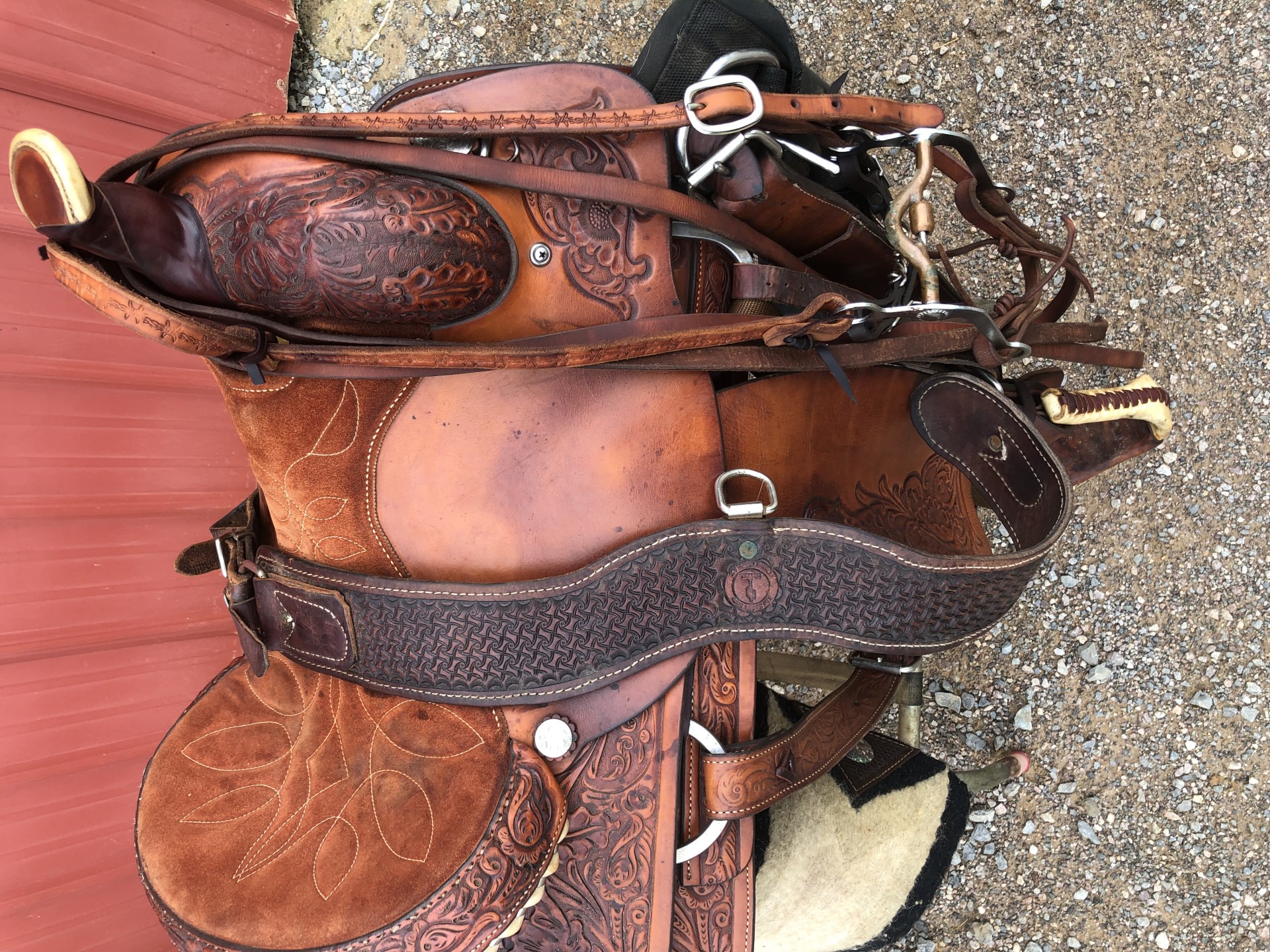 circle Y ropin saddle. Ridden very little. Comes ready to ride w both cinches, handmade tripping collar, good wool pad, fully rigged bridle. PLEASE TEXT OR CALL ONLY. Thank you