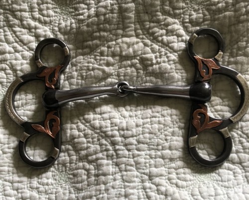 Unused Stephen White short shank snaffle mounted with copper and silver. Really nice, clean bit. PLEASE TEXT OR CALL ONLY. Thank you.