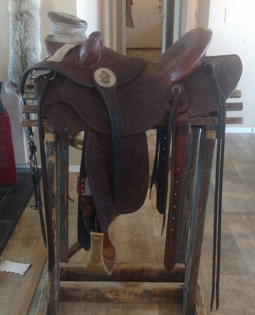 Keith Valley custom tooled saddle, 15 1/2 in seat w a Keith girtch 90 degree tree. Rode in for a year and a half.