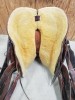 This hard seated saddle comes with a rough-out seat, seat jockey, and fenders. Finished with basket stamp tooling and a rawhide cantle. Comes with a back-cinch. This saddle is ready to work this summer!