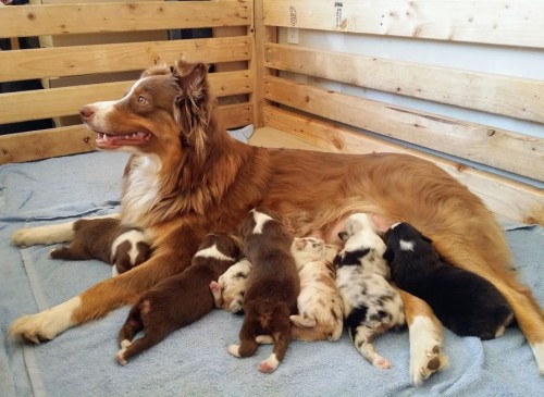ASCA Australian Shepherd puppies born July 12th from Working Parents. Will be ready for placement in their forever homes on September 6th. 1 Blue Merle Male SOLD,1 Red Merle Female, 1 Black Tri Male and 3 Red Tri Females available. Will have had 1st Shots and Wormed. Call LaDonna @ 719.247.9746 for more information.