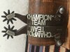ABBOTT 186 marked spurs made by Texas cowboy and spur maker Larry Abbott. 1 1/8" bands, 3 1/4" heel openings, 2 1/8" shanks, 1 1/2" rowels. Very good using style spurs in good condition. Mr. Larry’s work are not often seen on the market and are desired by many that know his work. We pay shipping within the 48 states. We accept most credit cards, Pay Pal, money order, or check