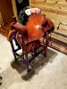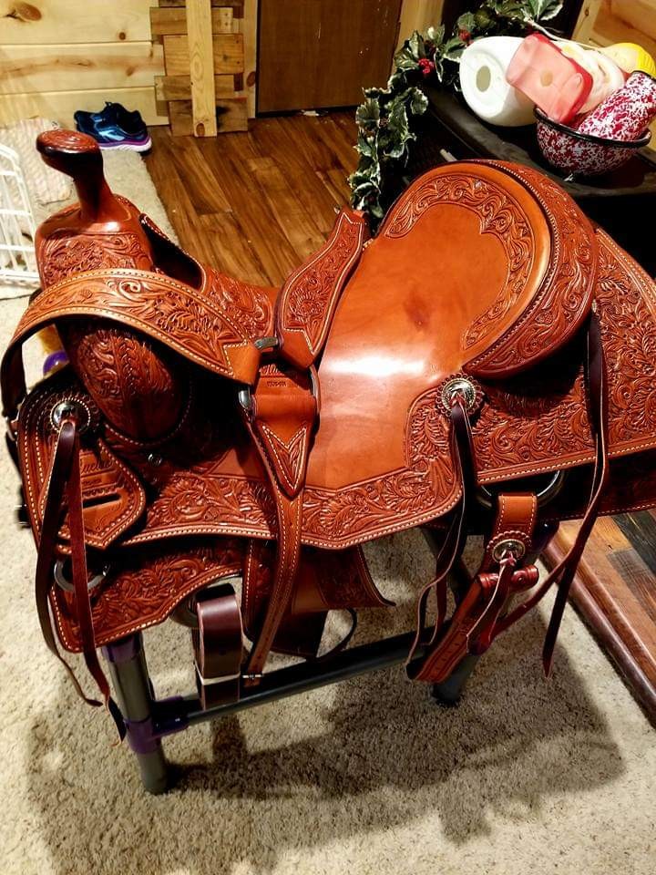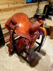16.5" Ruelas Cowhorse saddle with matching breastcollar. This saddle is so comfy to ride, fenders are supple and soft. Stirrups not included. 7 1/4" gullet, too wide for my filly.