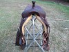 This hardseat cutter is a newer model made by Jeff Smith Custom Saddles. The seat measures 16 3/4 inches and the overall skirt length is 29 inches.The stirrups are 6 ply Nettles. The tree is a Terrin Rice. It has bamboo tooling with a roughout seat,jockeys, and fenders. We only accept PayPal for payment and ship Priority Mail. DO NOT Email us. Please text or call. Thank you!