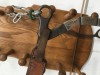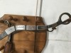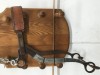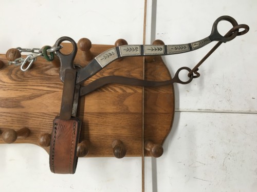 Bull marked hack made by Bull Parker of Kansas. He is known for making bits fro ropers, cow horse showmen, and the working cowboys. He understands bits. This one has a leather covered steel nose, chain curb, 8 7/8" cheeks, 10 hand engraved mountings, unused condition. We pay shipping within the 48 states and accept most forms of payment.