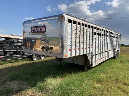 1988 EBY 36’ ground load livestock trailer. New LED lights and brand new tires and spare. 28’ of deck with 8’ nose storage and ramps, 93" wide, 85" tall with 2 interior cut gates and front entry gate. 17.5 tire size, new 10k heavy duty torsion axles, just installed aftermarket king pin to gooseneck conversion adapter and electric over hydraulic brake system. Must have a flatbed to pull this trailer. Barn kept trailer with 1 owner extremely well maintained. Clean title in hand