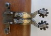 This is a pair of new handmade double mounted ladies spurs made by long time bit and spur maker Don Rogers of Hereford, Texas. Don has been building since 1975 and his work is sought after by cowboys and collectors alike. Don is listed in Bits and Spurs, Motifs, Techniques and Modern Makers by Ned and Jody Martin. The spurs are marked Rogers on the outside of the heel bands. The spurs are steel and are mounted with four pieces of brass, eighteen pieces of nickel silver, and two pieces of copper. The outside bands are mounted with a flower with hearts on the outside buttons. These spurs would be nice to use or a great pair of spurs to add to a collection from a very collectible maker.