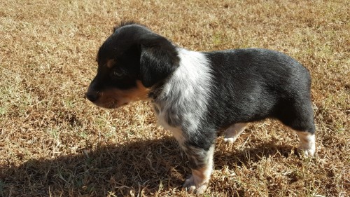 Beautiful Blue Heeler/Aussie mix pups. 6 weeks old. Tails & dewclaws are removed. 1st round of shots have been given. Very well mannered and socialized. Have been raised with children and other dogs on our back porch! Will make great companions or working dogs. Males have thicker hair. Female will have short hair.