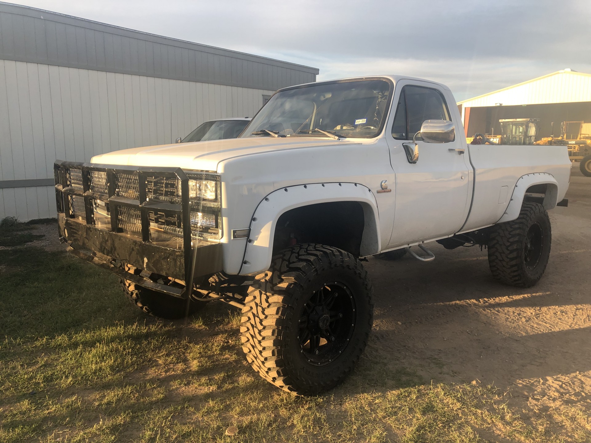 1984 Chevy K30 4x4, regular cab, Cummins 24 valve Diesel engine with 6 speed manual transmission, engine has 94k miles and is programmed. 6” lift with brand new 38” tires. Fuel wheels, 90 gallon toolbox fuel tank combo with diesel pump. Interior is clean and seat has been redone. New brakes, suspension and steering, rear air bags in the winter we put a 750# cake feeder in the bed and feed out of the rear of the truck with tailgate down. Clean title in hand. Cake feeder is not included. New halo led headlights and front replacement bumper.