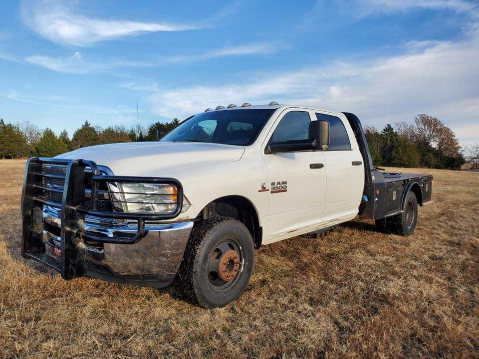 2014 Ram 3500 Crew Cab 4x4 dually flatbed with 198,323 miles and has plenty of miles left on this workhorse! Truck has an extra fuel tank on bed, almost new tires, and is ready to go to work. Truck has power windows and locks, cruise, am/fm, ac, and heat. Truck is detailed and runs and drives good! Truck is sold “as is”!
