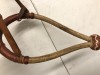 3/8" bosal in good used condition. Hanger is not too good. Feels like rawhide core, with flex, but not limp. 11" long. and 5" wide. We pay shipping within the 48 states. We accept most credit cards, Pay Pal, money order, or check.