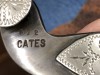 Outstanding pair of double mounted spurs by the late Jerry Cates. They were made for Bruce McGinnis of Amarillo, Tex. 11.15.83 and so marked. Bruce McGinnis was a noted Panhandle artist that wrote some western history and passed in 2014. Spurs are marked CATES 912. The leathers are Bob Marrs marked. Great bit of cowboy history about this pair with 1 3/4" rowels, 2 3/4" shanks, 3 1/4" heel openings, 3/4" bands. Made on the Crockett No. 125 pattern. We pay shipping within the 48 states and accept most forms of payment.