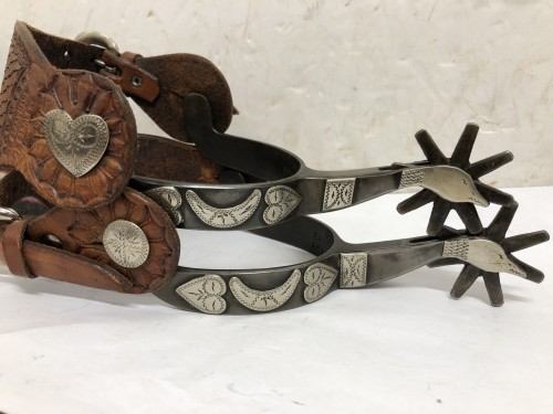 Handmade Bits & Spurs for Sale: CATES CUSTOM DBL MTD SPURS-MARRS STRAPS SOLD #114546
