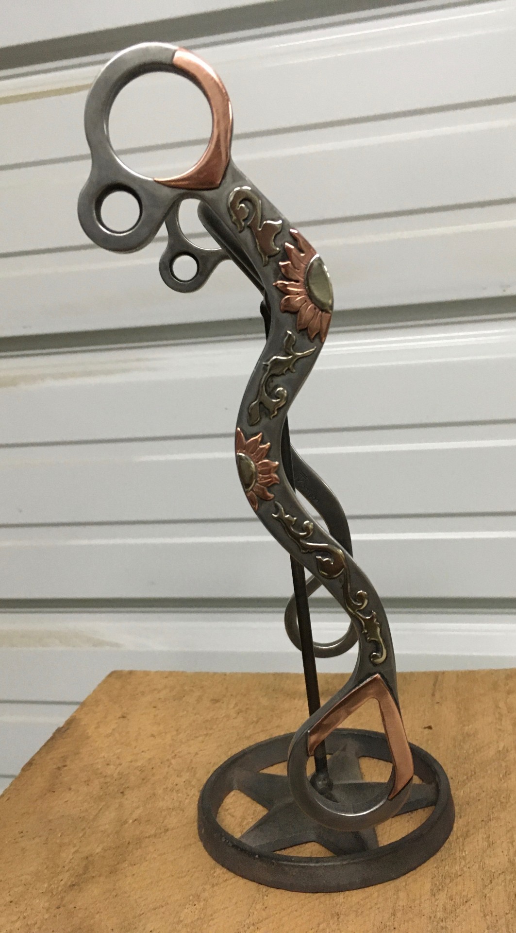 Custom made bit by TMorrison from Oklahoma. Patterned after the classic Klapper 27. This bit has a 5 1/8” wide mouth, 2” port, 3” purchase and 6” shank. Stamped with TMorrison. PayPal only. Buyer pays $8 shipping