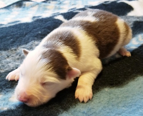 We are every excited to have this litter on the ground. Parents are proven producers and workers. This is a repeat mating with Blue x Mae. Blue is a blue Merel from SweetIron Ranch and Seven Links Ranch (going back to Blue Haze). Mae is a red Female directly from MillIron ranch. Full sibs are working livestock (sheep, goats, and cattle) and very bidable.