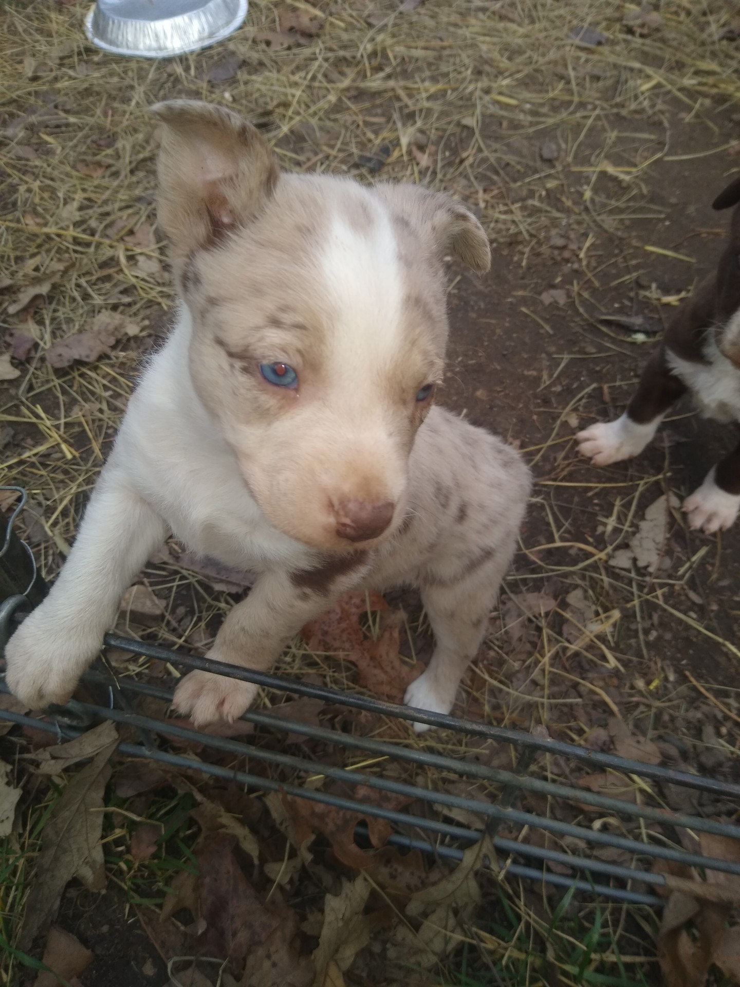 Hangin Tree Pup out of working parents . Both parents are out of Charlie’s Cowdogs! Currently have 1 female left she is 5 weeks old , we have a white Merle left Previous pups have are doing well with repeat customers asking for more . We are asking $350 on the merle and $300 on the red, pups aren’t registered as reflected in the price have appendix papers on the mother. These should be excellent working dog’s . Taking $50 PayPal deposit .Call or text 417-224-3430