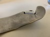 This is a pair of used handmade spurs made by Roy Robinson from Bryan, Texas. Roy owned Roy Bits & Spurs and made top quality bits, spurs, and saddle hardware. Roy is listed in Old Cowboy Saddles & Spurs by Mike & Gretchen Graham. The spurs are appear stainless but hold a magnet. Both sides are shown in the photos. There are some marks from use. There is a crack in the heelband on one spur just below the hanger. The crack goes all the way through as shown in the photos. The maker that replaced the rowels said they are still plenty stout. The metal Roy used was tough! The price has been adjusted for the crack. Both spurs are marked Roy on the outside of the heel bands. They have brass buttons. The rowel and rowel pins were replaced with steel rowels. They are a similar style and size to the original rowels except they are steel instead of brass. This would be a nice pair of spurs to wear.