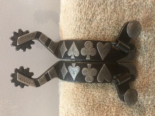 Handmade Bits & Spurs for Sale: Randy Butters Card Suit Spurs SOLD #116248