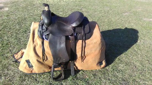 Custom made roping saddle, Bill Price Lubbock Texas. Solid and heavy, well made and tough. Fenders have been stitched. 16" More pics available.