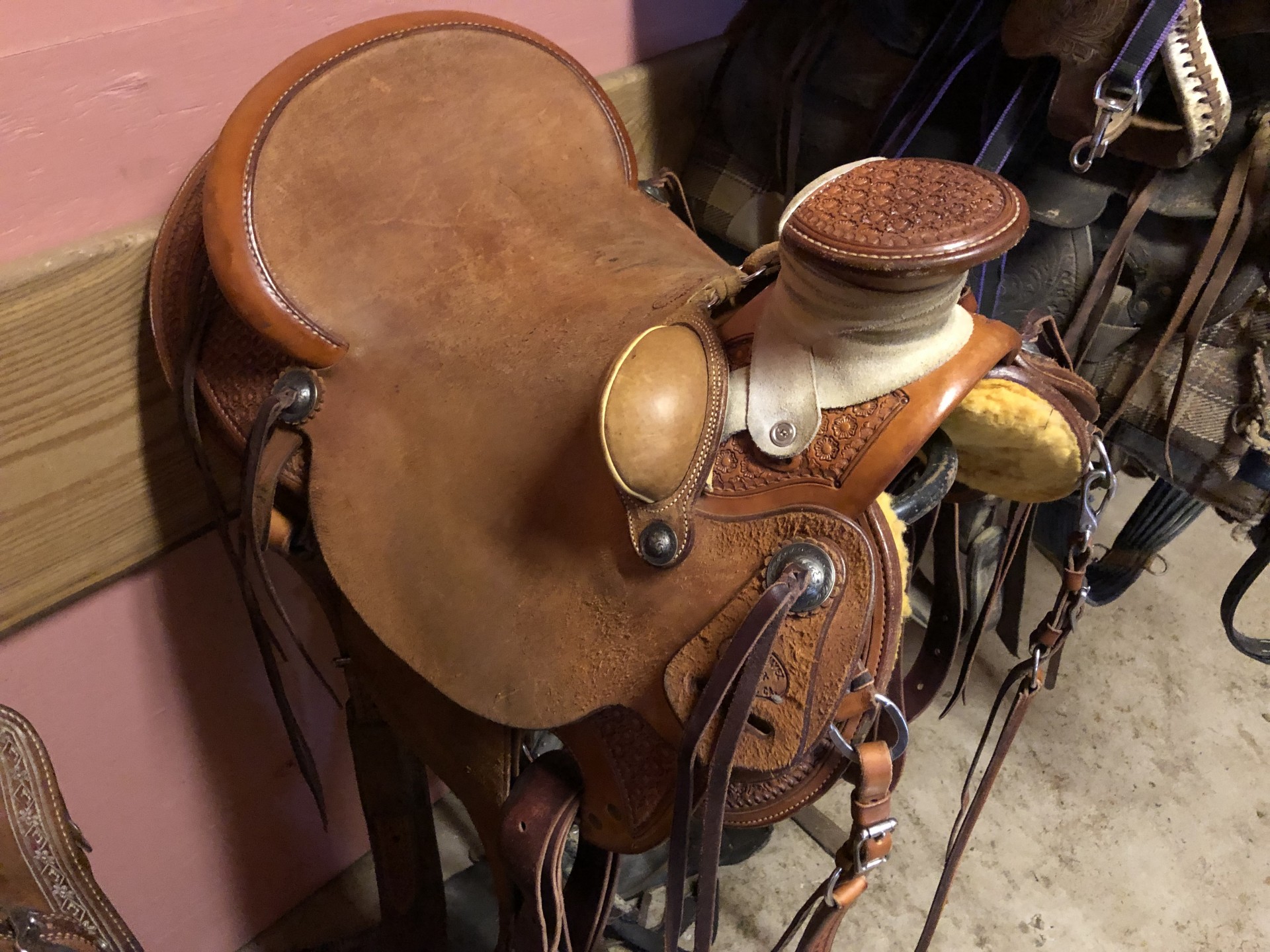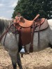 Like new Robert Chavez wade with 15.5” seat, high quality silver, 5” monels with heel blocks, and matching breast collar. Front girth not included but it does come with rear cinch. The crossover strap is missing due to horse snagging rope on trailer. Otherwise, excellent condition. Approximately 8k if ordered + wait. $6500