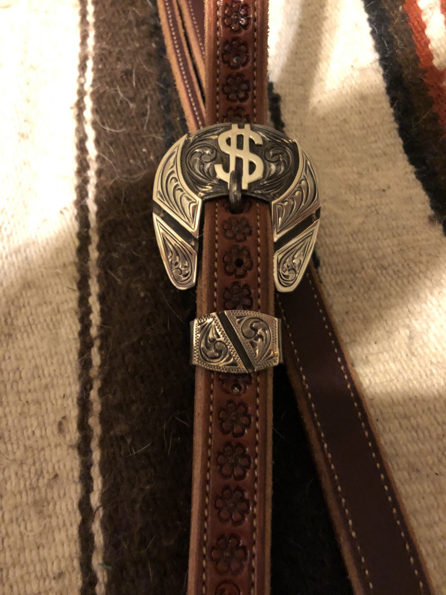 New Ty Barton lined, stamped splitear with Carlos Manzanares buckle. Really nice work on both parts. $175 shipped in lower 48. PLEASE TEXT OR CALL ONLY. Thank you