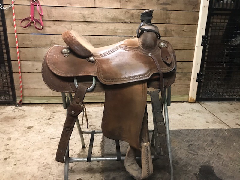 Martin rough out team roper. Barbed wire tooling. Great shape. Only roped a few steers.
