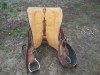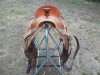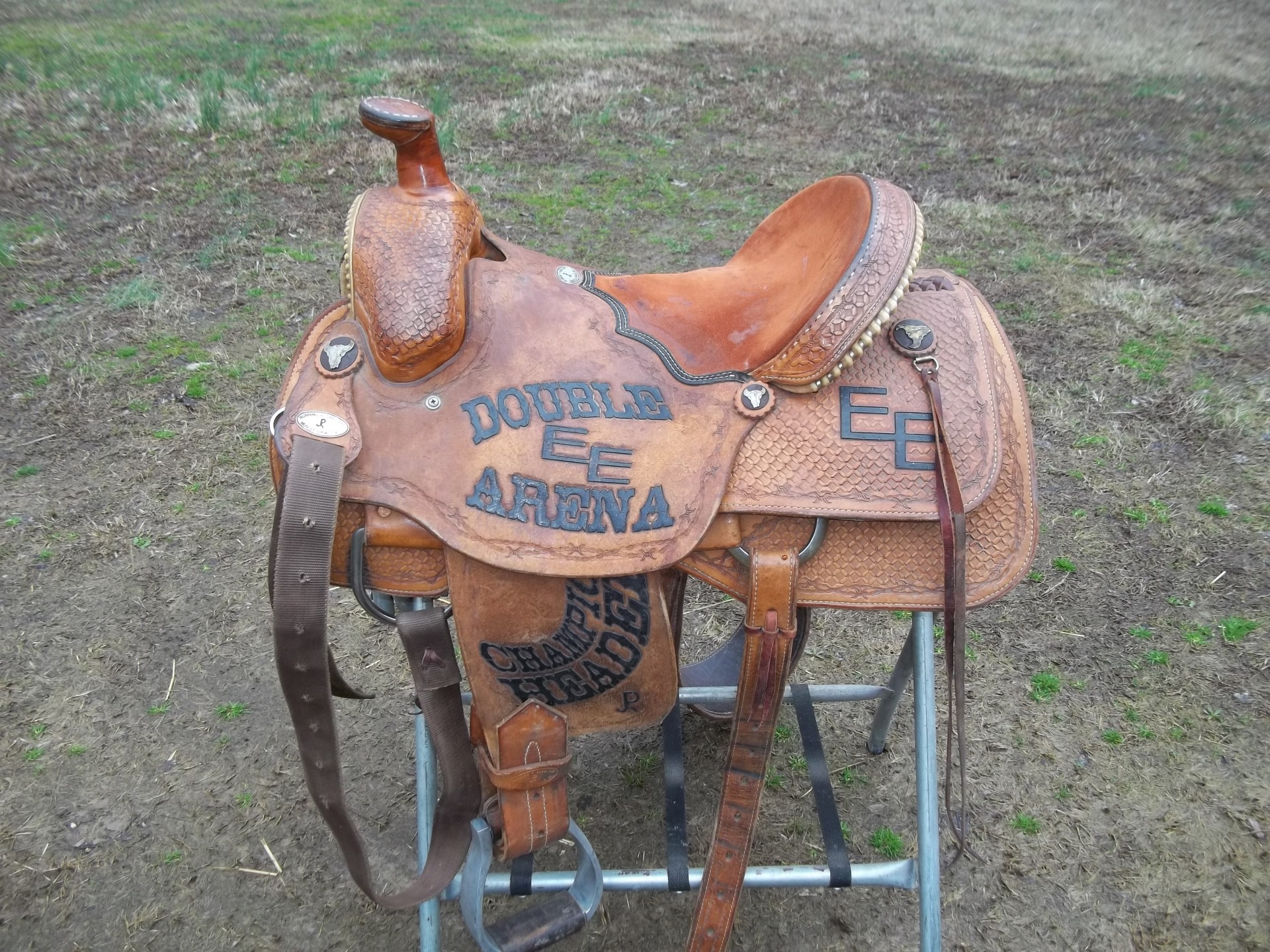 This Running P Saddlery trophy roping saddle was made in Muscle Shoals, AL. The horn and tree are tight. It has a 15 inch padded seat. The overall skirt length is 28 inches. The cantle is 4 inches tall, the horn is 3 1/2 inches tall, and the cap diameter is 2 3/4 inches. The 5 inch back cinch is included, but there is no front girth. This saddle is comfortable to it in. We only accept Paypal and ship priority mail.