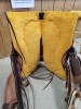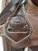 This saddle is beautiful! This comes with a rough-out seat, seat jockey, and fenders. Finished with fan and floral tooling. Comes with saddle strings.