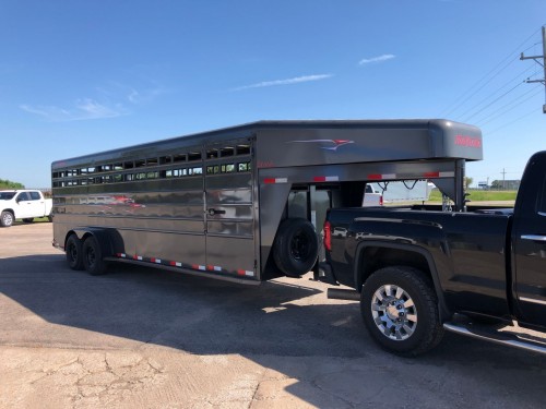 Up for sale is a Brand New Travalong 24’ Gooseneck Stock Trailer. These trailers are Heavy Duty built compared to a lot of trailers and built right here in Kansas. They have 7K Torsion axles, Smooth formed outside skin, Door vents Door Vents under the nose, 2 Combo Gates and 1 Solid gate and 4’ Cleated Rubber Floor in the rear. If you have any questions please call or text me and id be happy to help anyway I can!!
