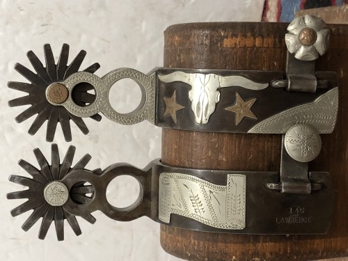 Handmade Bits & Spurs for Sale: FRANK LAWRENCE DOUBLE MOUNTED SPURS SOLD #119777