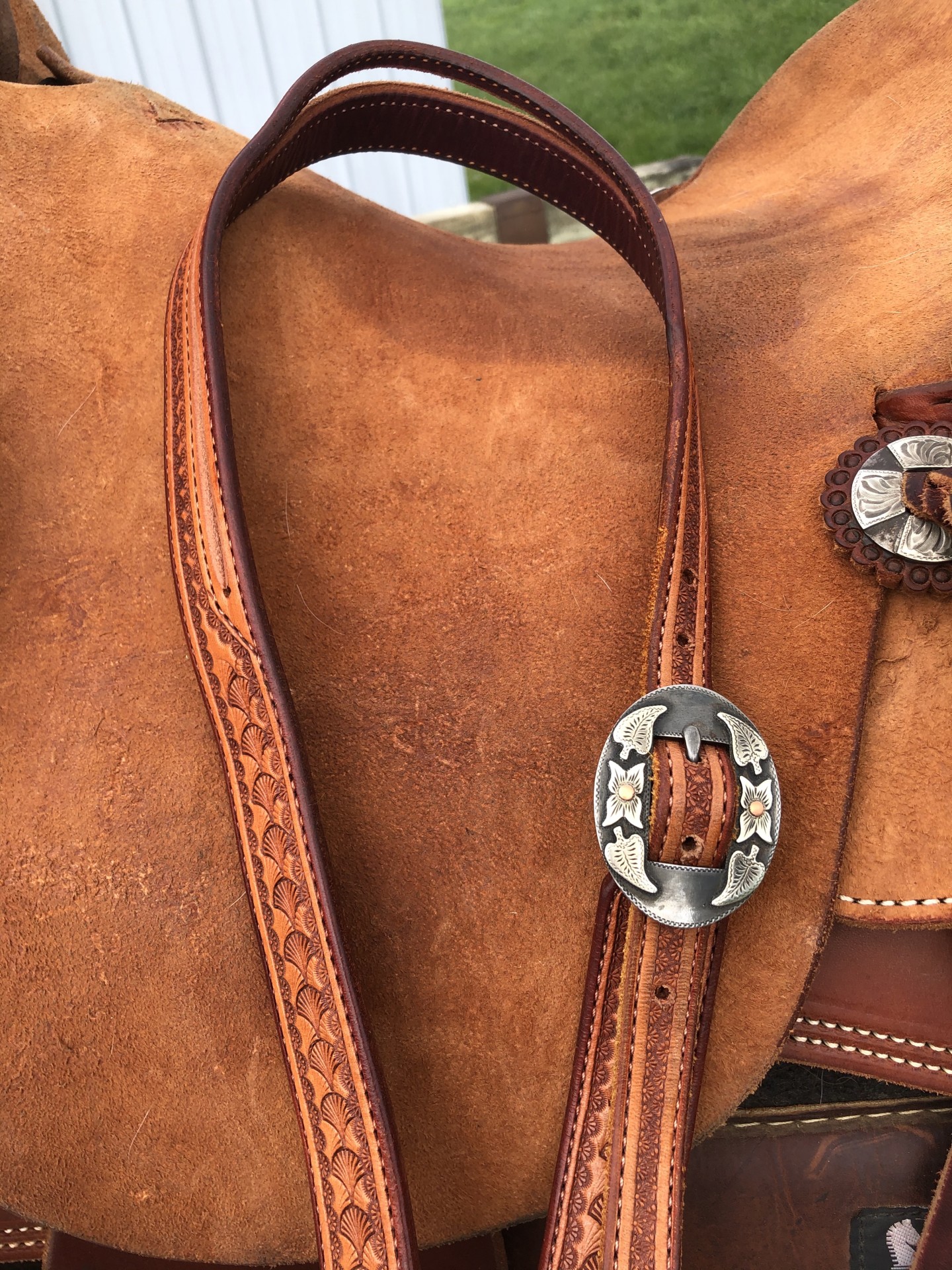 New Brandon Ward stamped and lined w latigo splitear headstall w Terry Alward buckle. $200 shipped in lower 48. PLEASE TEXT OR CALL ONLY. Thank you