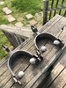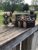 Nice pair of double mounted spurs handmade by Pat Ray Castleberry. All buttons mounted and engraved. New condition w no issues. 1 1/4” band. 2 1/4” shank. 1 1/2” rowels. $450 shipped in lower 48. PLEASE TEXT OR CALL ONLY. Thank you