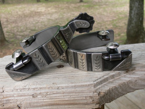 Handmade Bits & Spurs for Sale: RAY CASTLEBERRY DBL MTD ROPING SPURS SOLD #120353